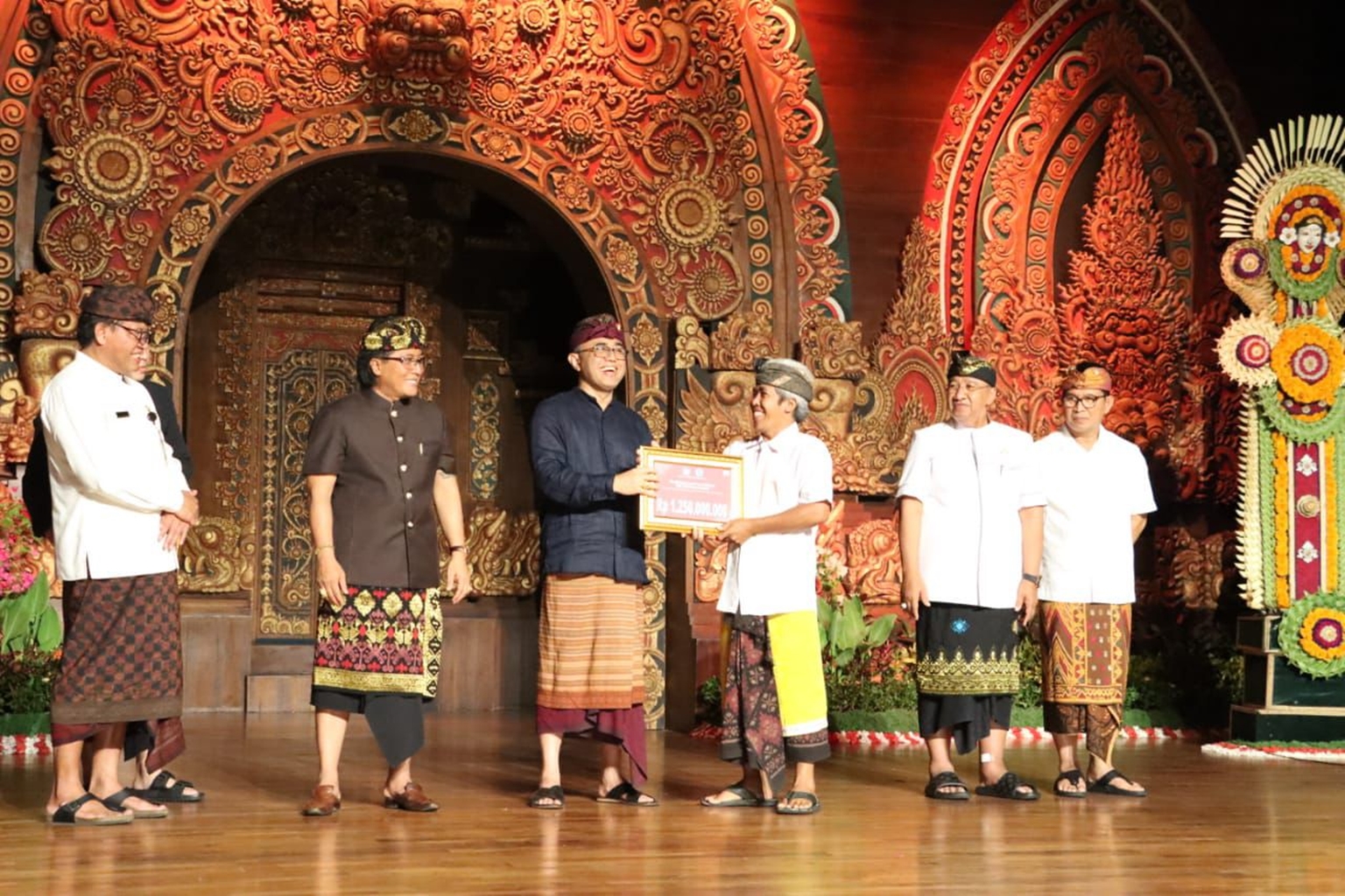 Sejak tiba, kehadiran orang nomor satu di gumi keris ini disambut dengan Tabuh Baleganjur Ngarap hingga pagar ayu. Selain itu, Bupati Giri Prasta juga tampak ngibing Joged Bumbung khas Kota Denpasar. Rangkaian penyerahan hibah diawali dengan Tari Tenggek yang merupakan maskot flora Kota Denpasar. Usai penyerahan hibah, tampak Bupati Giri Prasta bersama Walikota Jaya Negara turut bernyanyi bersama.