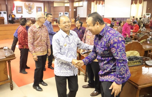 DENPASAR – Gubernur Bali Wayan Koster menghadiri Rapat Paripurna ke-13 Masa Persidangan II Tahun Sidang 2024-2025 bertempat di Ruang Sidang Utama, Kantor DPRD Provinsi Bali, Denpasar, pada Senin (14/4).