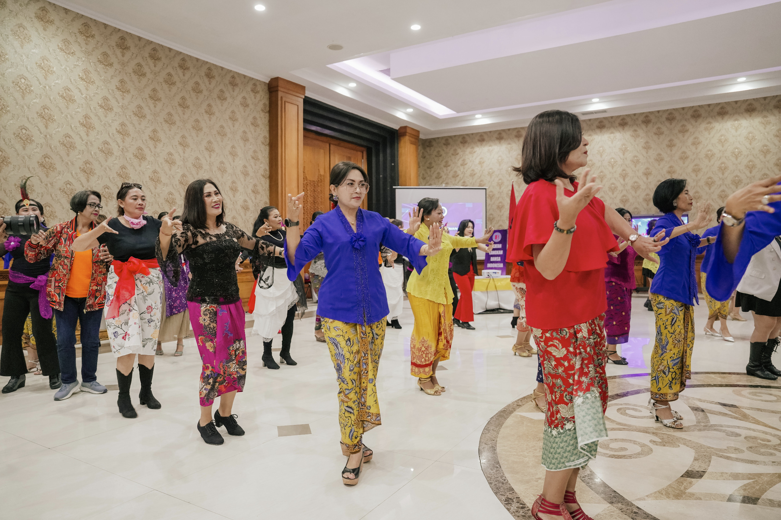 Penasehat Dewan Pimpinan Wilayah Ikatan Langkah Dansa Indonesia (DPW ILDI) Kabupaten Badung, Nyonya Rasniathi Adi Arnawa, menghadiri acara Gathering dan Senam Sehat Line Dance di Gedung Balai Budaya Giri Nata Mandala, Puspem Badung, Minggu (19/04/2026). Kegiatan ini digelar dalam rangka memperingati Hari Kartini ke-147 tahun 2026.