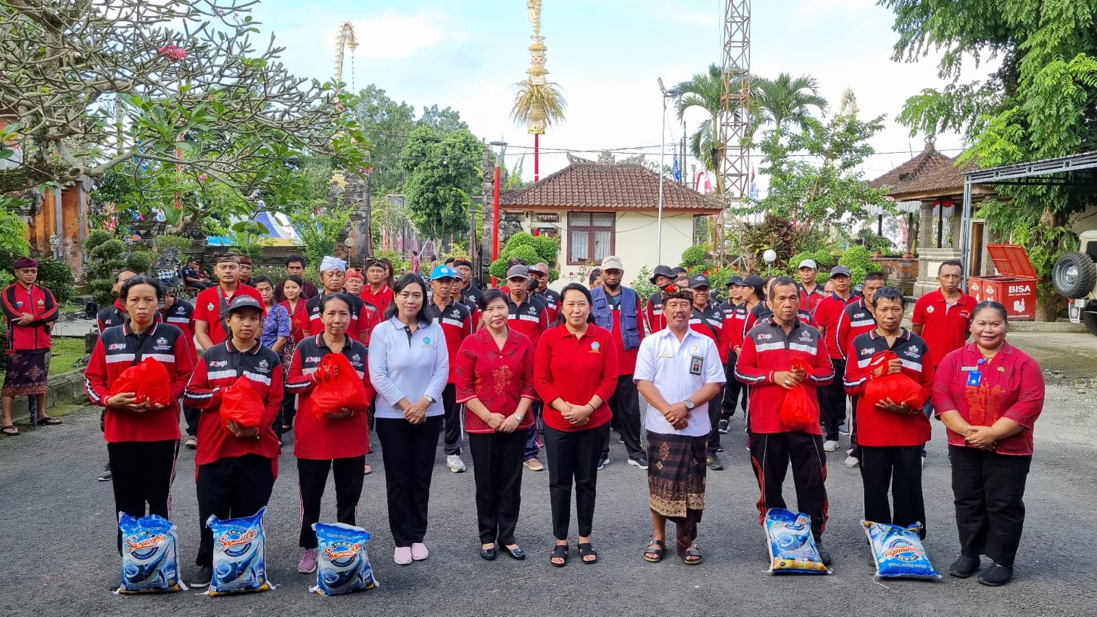 Bangli – Ketua Tim Penggerak PKK Kabupaten Bangli Ny. Sariasih Sedana Arta di dampingi Kepala Dinas Lingkungan Hidup Kabupaten Bangli I Putu Ganda Wijaya Menyerahkan bantuan paket sembako kepada enam puluh orang petugas kebersihan yang bertugas di alun alun kota Bangli pada Selasa, (07/05/2024) bertempat di halaman Rumah Jabatan Bupati Bangli.