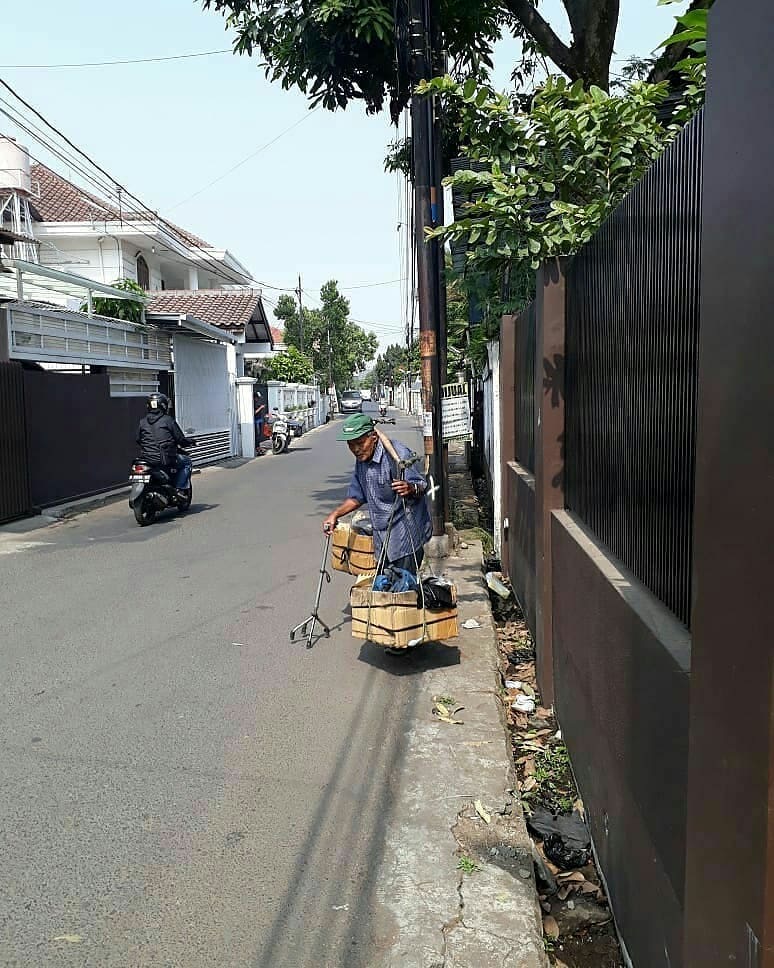 Kakek itu sebut saja Aki. Menurut informasi, aki berjualan kripik singkong keliling. Dagangannya ia gotong sepanjang jalan sambil berjalan menggunakan tongkat.