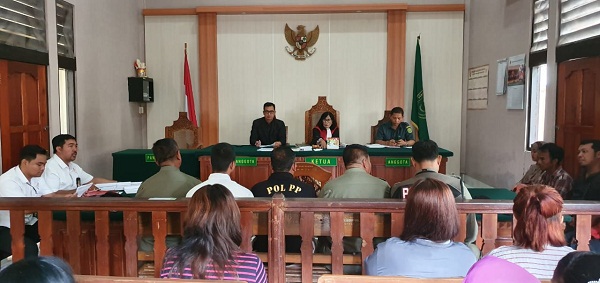 Adapun sidang yang dipimpin Hakim Ida Ayu Nyoman Adnya Dewi. SH., MH dan Panitera Ketut Semara Guna. SH., MH menjatuhkan hukuman kepada 16 orang Pelanggar perda. Yakni 5 orang pelanggar Ketertiban Umun PKL yang berjualan di trafic light, taman kota, dan sempadan jalan di seputaran Jl. Buluh Indah – Jl. Gatot Subroto Barat – Jl. Gunung Agung dan simpang Jl. Cokroaminoto yang didenda sebesar Rp. 200.000.