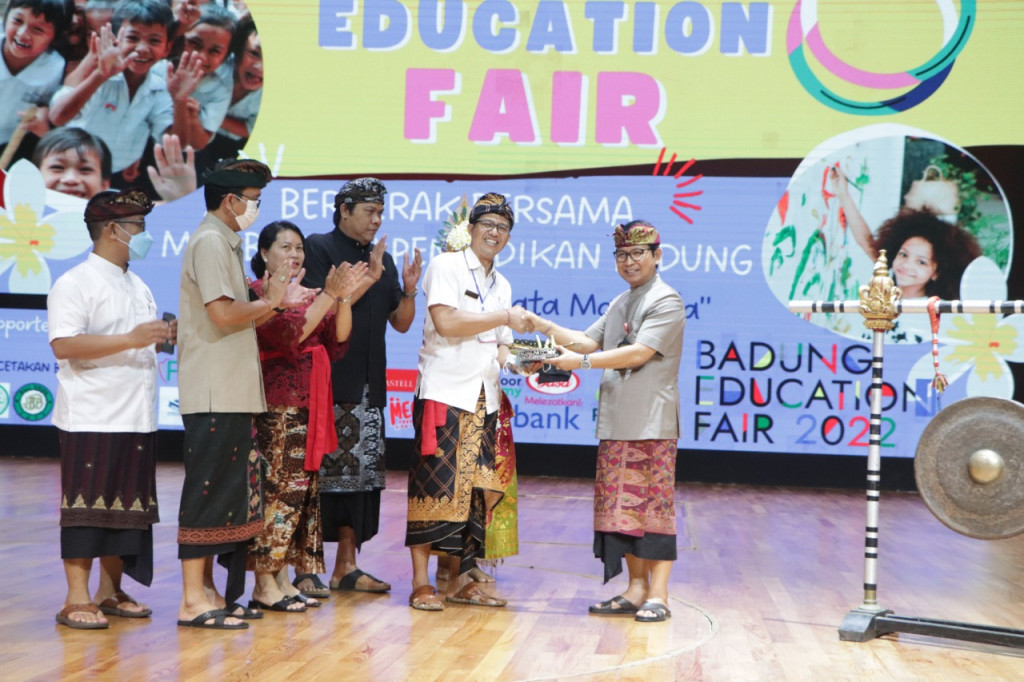 Sekretaris Daerah Kabupaten Badung I Wayan Adi Arnawa menghadiri sekaligus membuka acara Badung Education Fair Tahun 2022 yang ditandai dengan pemukulan gong, bertempat di Gedung Balai Budaya Giri Nata Mandala, Puspem Badung, Kamis (25/8). Acara yang mengangkat tema “Mewujudkan Badung Cerdas, Berkarakter, Berbasis Digital dan Lingkungan” ini juga turut dihadiri Anggota Komisi IV DPRD Badung Made Suwardana, Bunda Paud Kabupaten Badung Ny. Seniasih Giri Prasta, Kepala Dinas Pendidikan, Kepemudaan dan Olahraga, Ketua Balai Guru Penggerak, Pengawas Disdikpora Kabupaten Badung, Kepala Sekolah TK, SD, SMP dan SMA/SMK se-Badung, Ketua PGRI Badung, Ketua Dewan Pendidikan Badung serta undangan lainnya. Sebagai motivasi dan dukungan, Sekda Adi Arnawa menyerahkan bantuan dari Pemkab Badung  sebesar Rp. 20 juta.