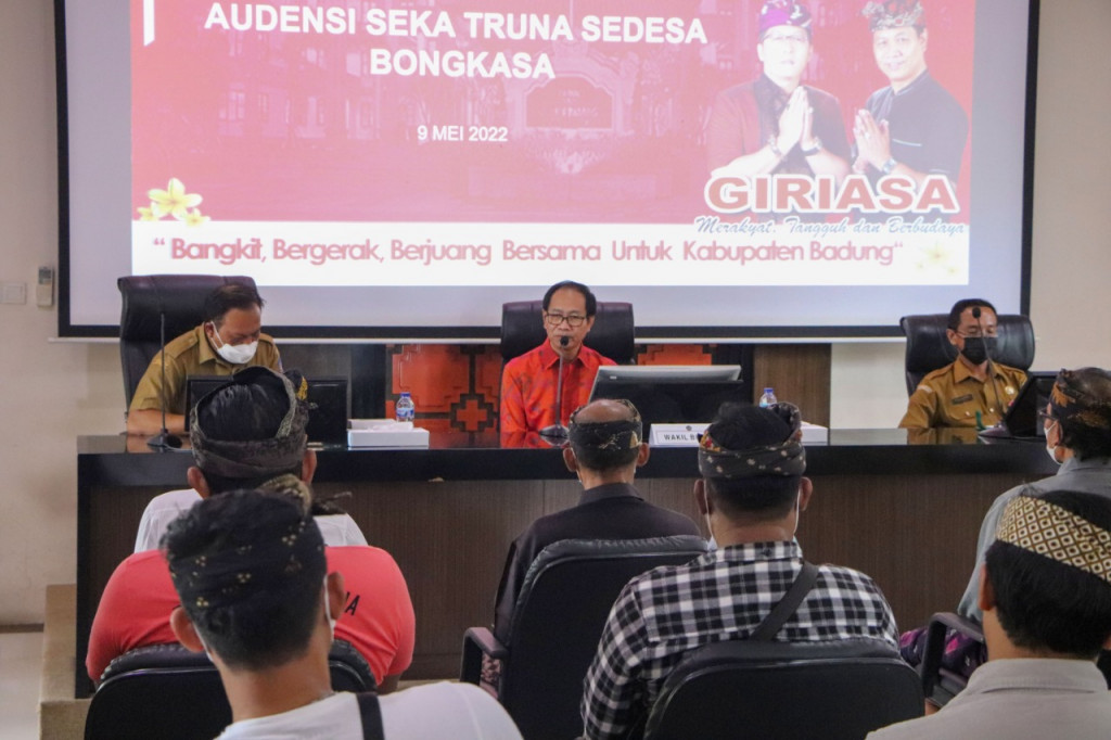 Sementara itu perwakilan Sekaa Teruna Bongkasa Gede Bendesa Darmayana, dalam audiensinya melaporkan, kami secara umum merupakan perkumpulan anak muda se-Desa Bongkasa untuk menghadap Bapak Wakil Bupati Badung, ingin  melakukan audiensi pada hari ini untuk membentuk Yayasan Bongkasa Maju. ”Kegiatan ini sekaligus mewadahi kegiatan sosial, pendidikan dan kebudayaan. Untuk itu kami minta kepada Bapak Wakil Bupati Badung untuk memberikan arahan kepada kami agar kami bisa menjadi semangat terhadap generasi muda yang ada di Desa. Kami dari Sekaa Teruna Desa Bongkasa ada sepuluh Banjar yang terdiri dari dua Desa Adat. Tujuan kami melaksanakan kegiatan ini untuk menyatukan persepsi dalam melakukan kreativitas kedepannya. Jika dilihat dari zaman digitalisasi maka generasi muda selaku garda terdepan, di dalam merestorasi, perubahan, pergerakan membangun desanya sendiri, “ungkapnya.