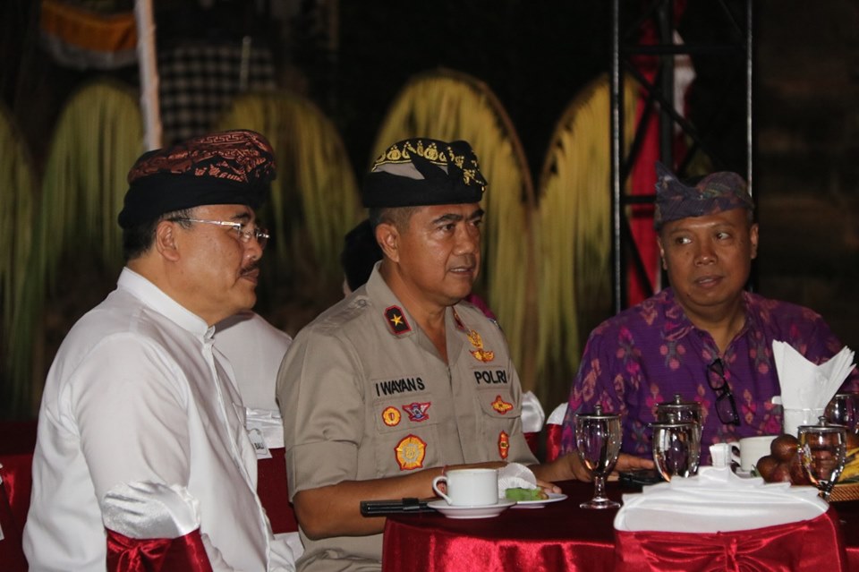 Polda Bali – Wakapolda Bali Brigjen Pol. Drs. I Wayan Sunartha didampingi Direktur Binmas Polda Bali Kombes Pol. Komang Suartana S.H., S.I.K. dan Kapolresta Denpasar Kombes Ruddi Setiawan., S.I.K.,SH.,M.H. menghadiri acara peringatan 118 Tahun Hari Lahir Bung Karno sekaligus dalam rangka Halal Bihalal Idul Fitri 1440 Hijriah, di Rumah Jabatan Gubernur Bali, Jaya Sabha Denpasar Kamis (6/6/2019).