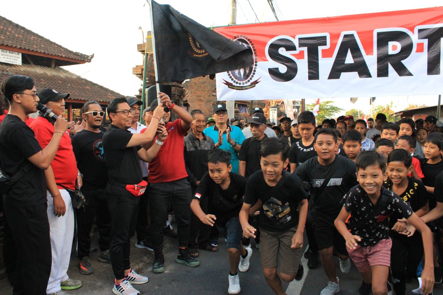 Denpasar – Wakil Walikota Denpasar, I Kadek Agus Arya Wibawa membuka sekaligus melepas 1000 peserta Jalan Sehat serangkaian Anniversary Ke-10 Wangsing Wengkon Tag-Tag, di Balai Wantilan Jaba Pura Gede Besakih, Banjar Tag-Tag Tengah, Kelurahan Peguyangan, Denpasar Utara, Minggu (11/8).